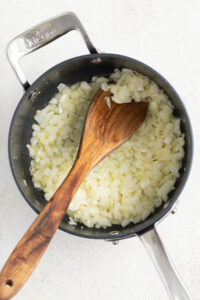 - Meanwhile, prepare the BBQ Sauce: Heat the butter in a large saucepan over medium-high heat. Add the onion and garlic and cook until soft, about 5 minutes.