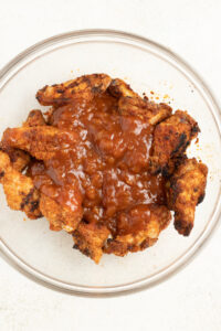 - In a large clean bowl, toss the wings with the BBQ sauce and serve.