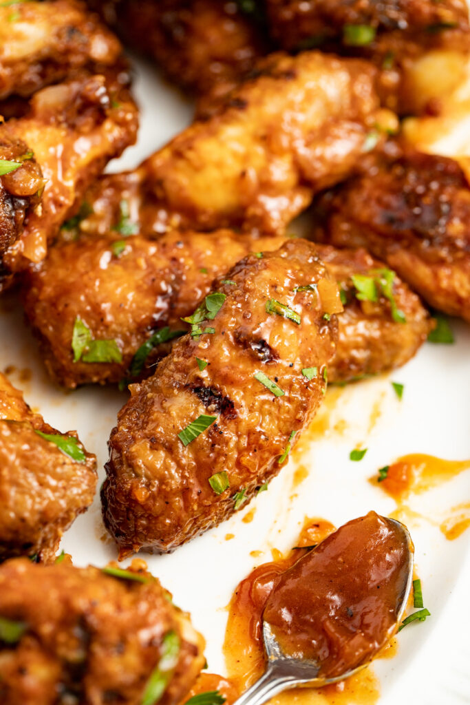 Spicy Peach Bourbon BBQ Sauce Chicken Wings