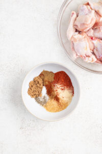 - In a small bowl, combine the paprika, onion powder, garlic powder, brown sugar, chili powder, cumin powder, salt and pepper. Sprinkle the rub over the wings, coating them evenly.